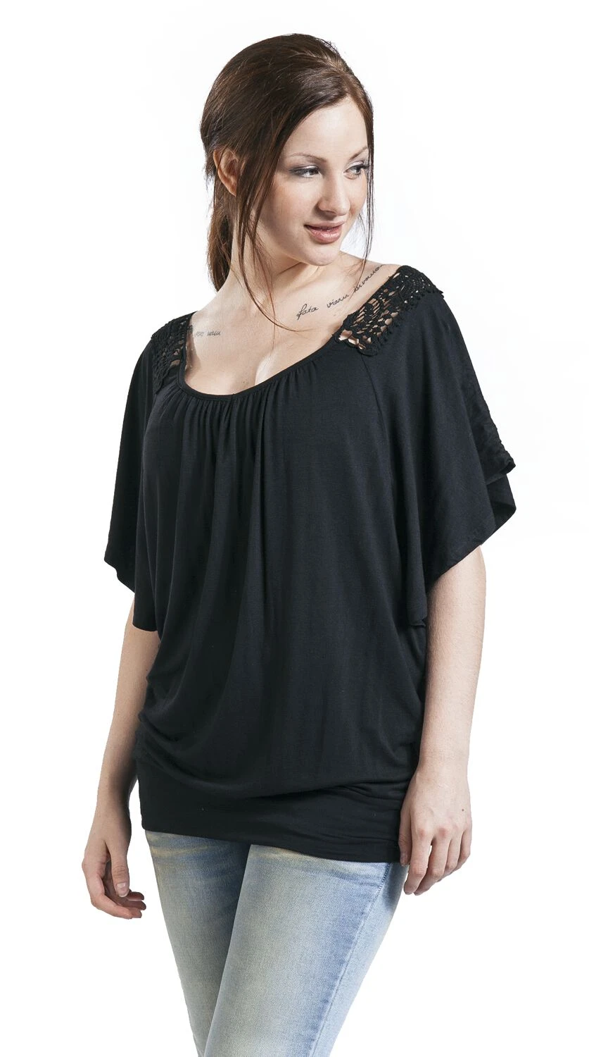 Black Premium by EMP serves this pitch-black “Bat” girls shirt with bat optics. The black shirt is really something to look at thanks to the lace inserts on the back. Put it on and look damn great!