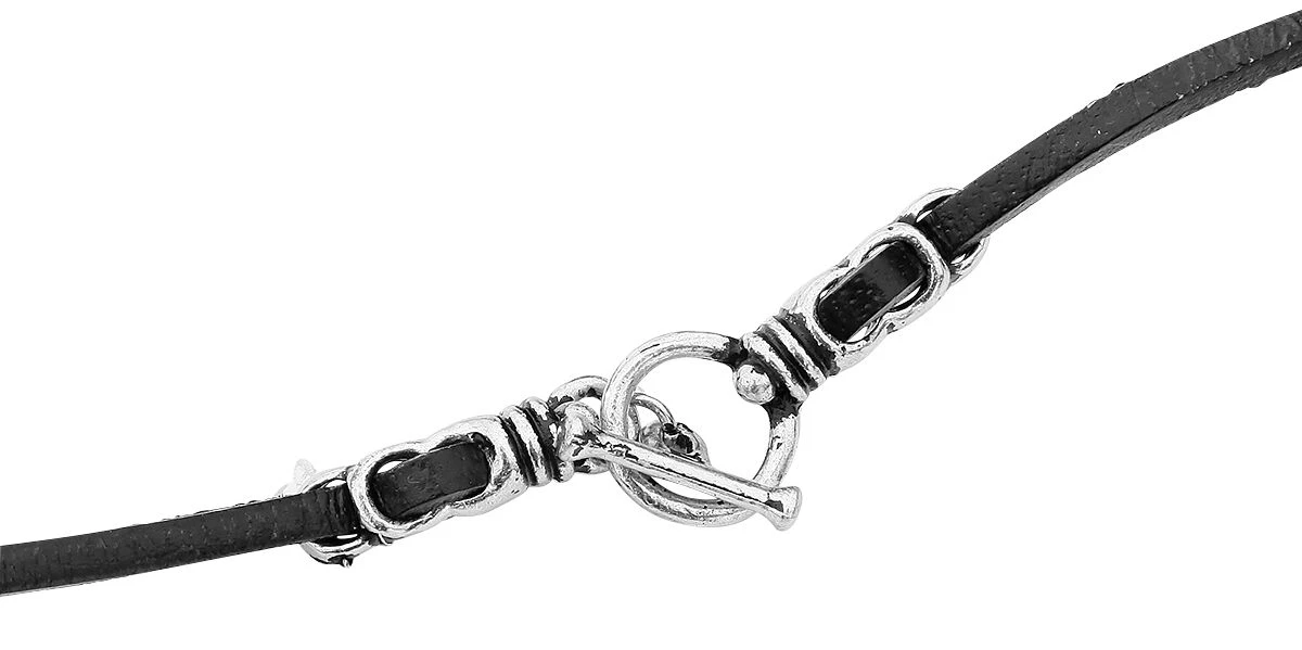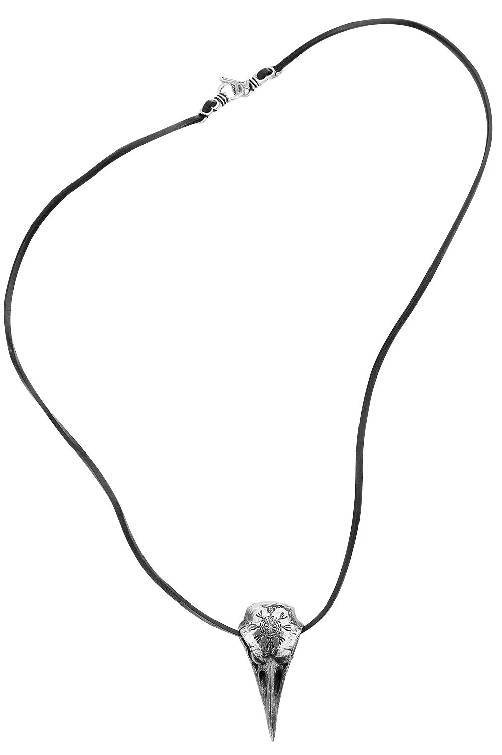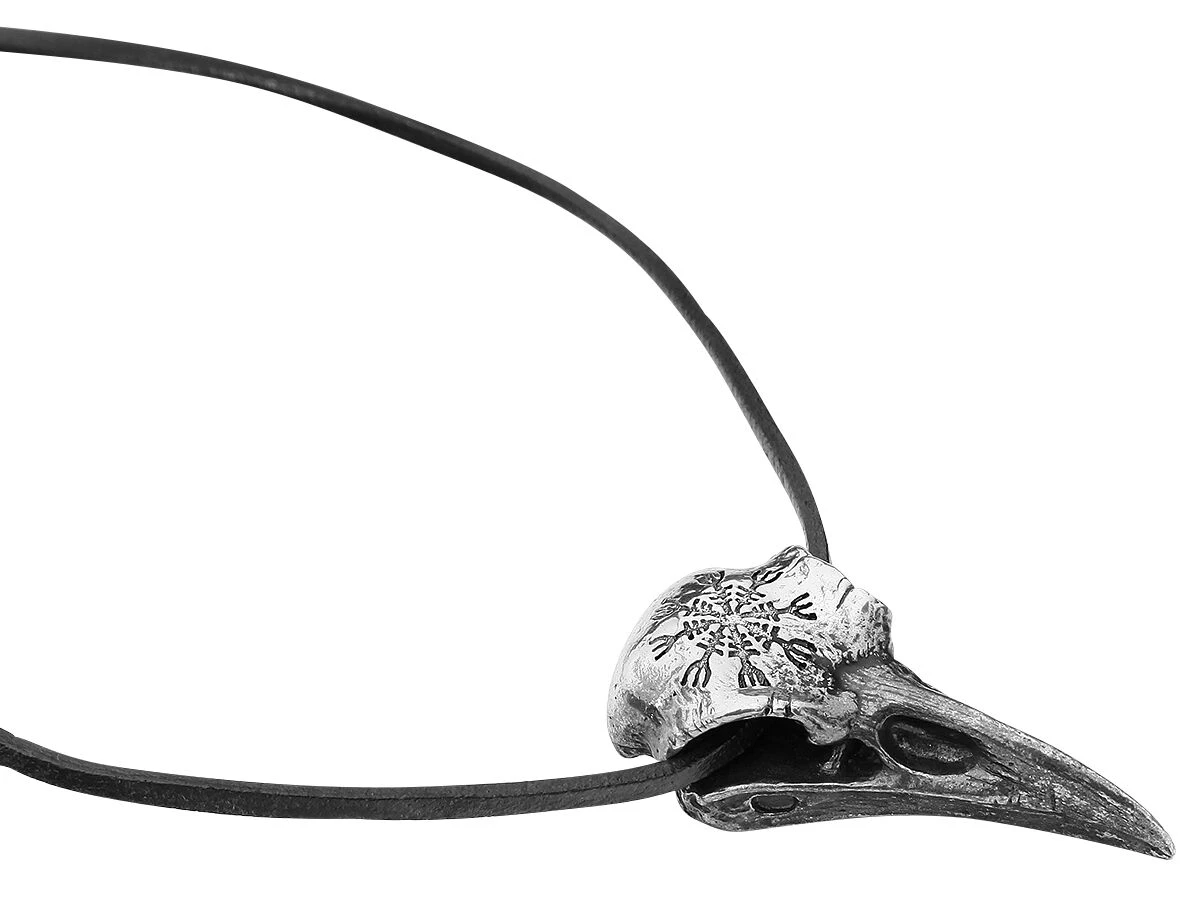 – sliver-coloured raven skulls pendant with 75 cm black leather cord
