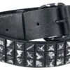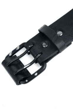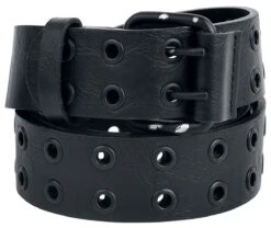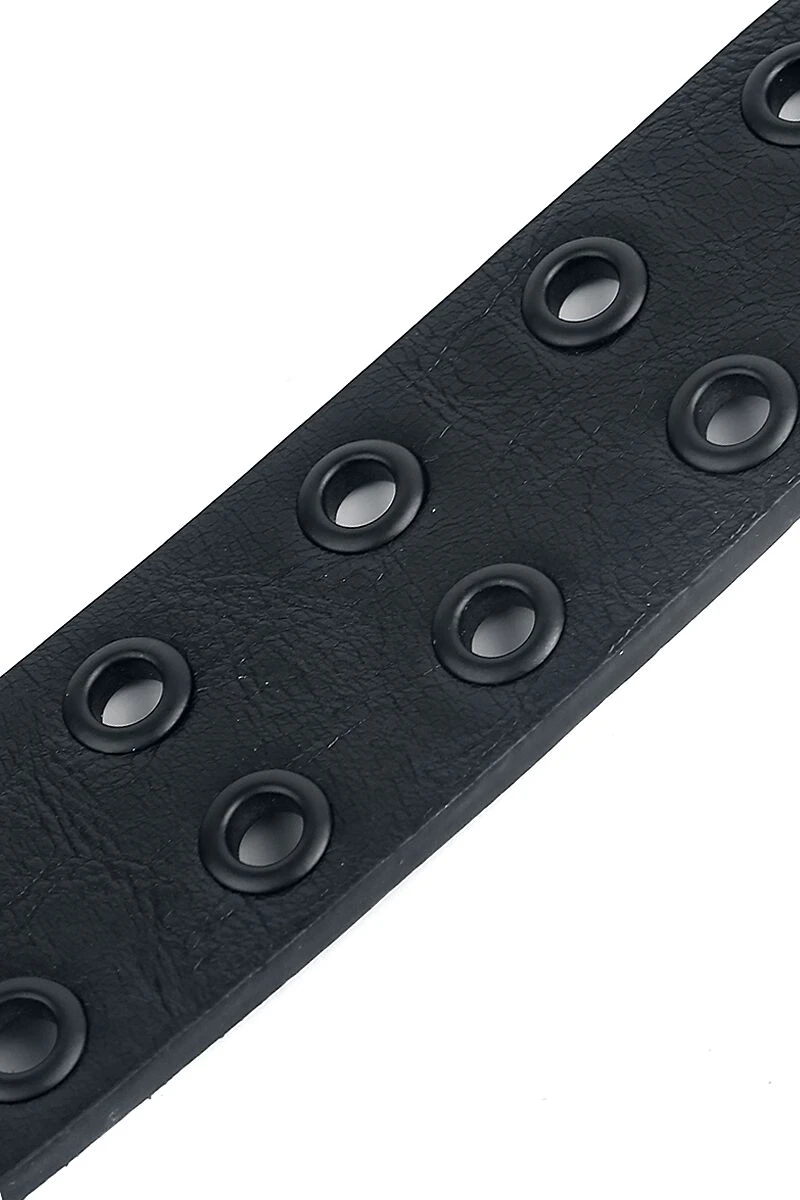 Every true metalhead needs a studded belt in their wardrobe. But if you really want to impress people, you need something special – like this metal hole-studded belt. Both the belt and hole studs are black. The two rows of studs create a cool look.