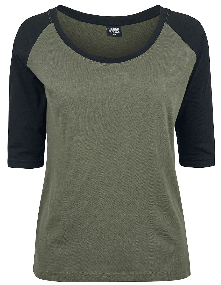 “Ladies 3/4 Contrast Raglan Tee” Long-sleeve Shirt Olive-black By Urban Classics