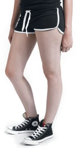 This “Ladies French Terry” hotpants by Urban Classics in black/white is absolutely hot. The girls hotpants will surely accentuate your sexy behind and makes for a great figure when you’re doing sports or if you’re walking in the streets. The white cord and the white seam on the side give these hotpants their sweet touch.