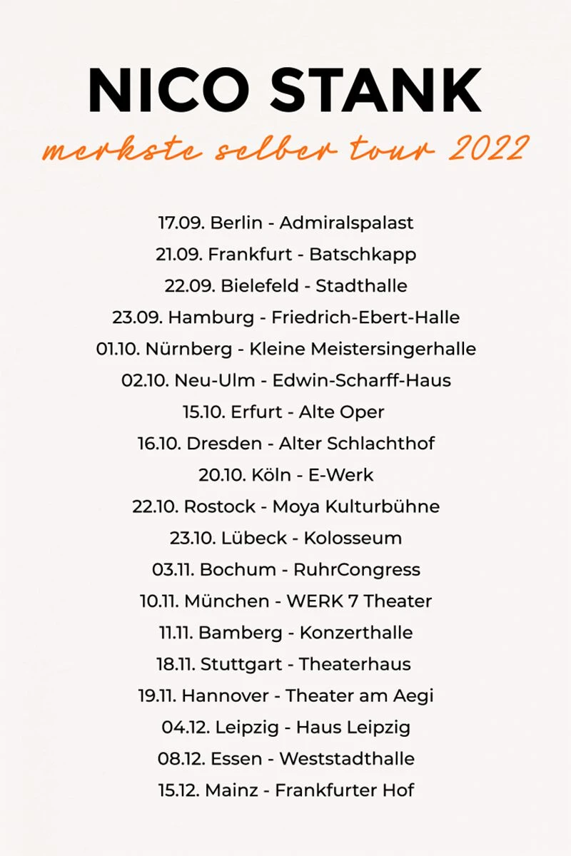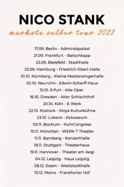 Be the first to review ““‘Merkste Selber’ Tour 2022 T-shirt” T-Shirt White By Stank, Nico” Cancel reply