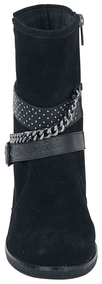 The Ruby Boots of Rock Rebel by EMP will get you a lot of attention. The boots are made of high-quality suede and look extremely elegant due to their narrow fit. Three chains with a broad buckle add a decorative touch to this extravagant boot.