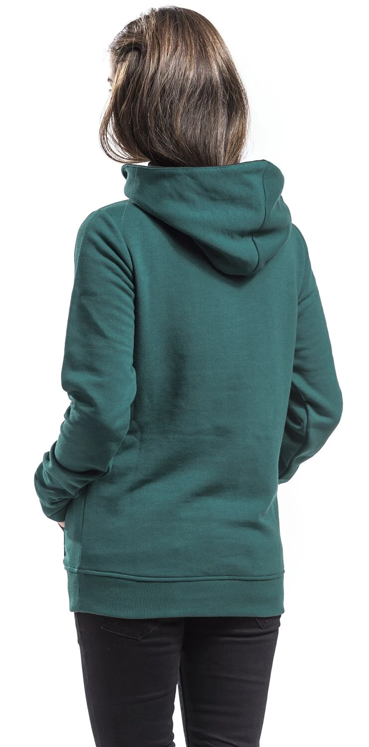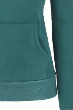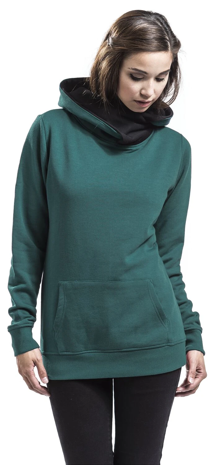 The Pentagram sweater from Forplay comes in particularly fashionable design. It features a trendy petrol colour and sports a large shawl collar. The inside of the collar is in black contrast colour, which further enhances the fashionable look. In addition, the sweater features a practical kangaroo pocket and rib cuffs.