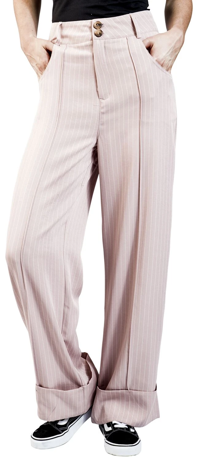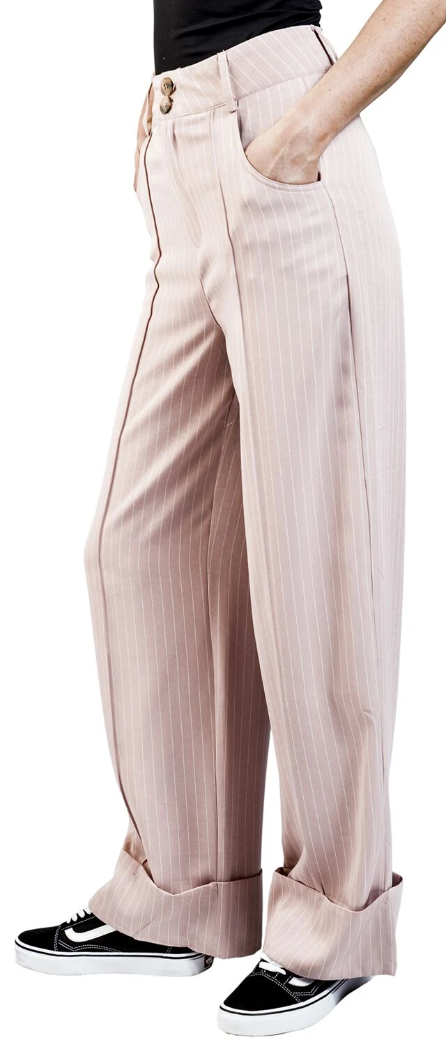 “Pinstripe Turn Up Trouser” Cloth Trousers Pink-white By Voodoo Vixen