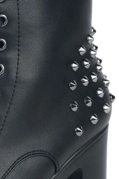 “Platform Lace-up Ankle Boots With Rivets” High Heel Black By Gothicana By EMP