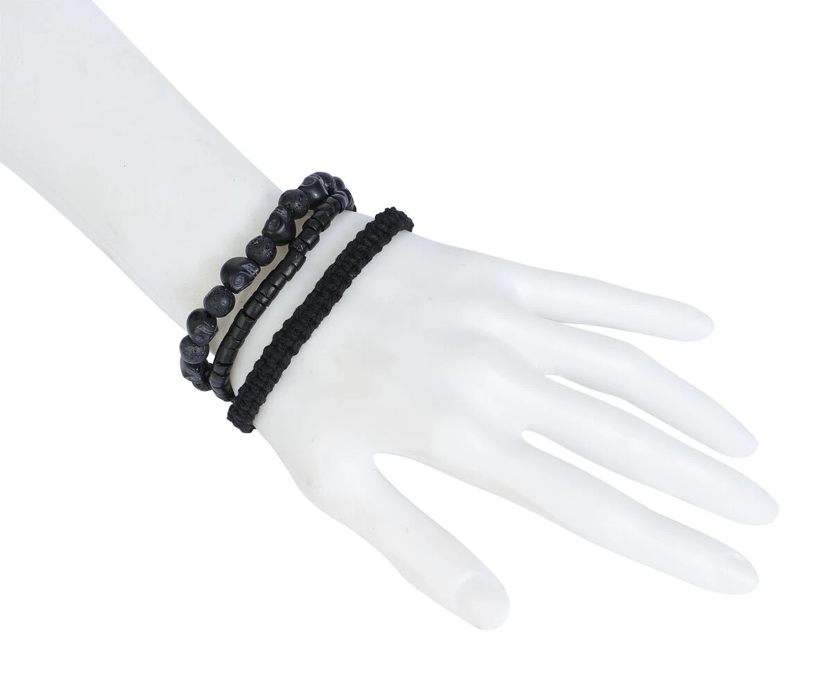 “Skull Bracelet” Bracelet Set Black By Rock Rebel By EMP