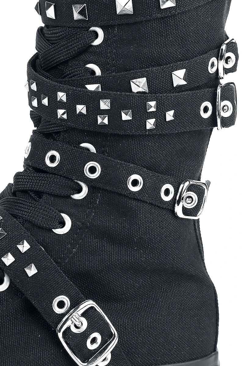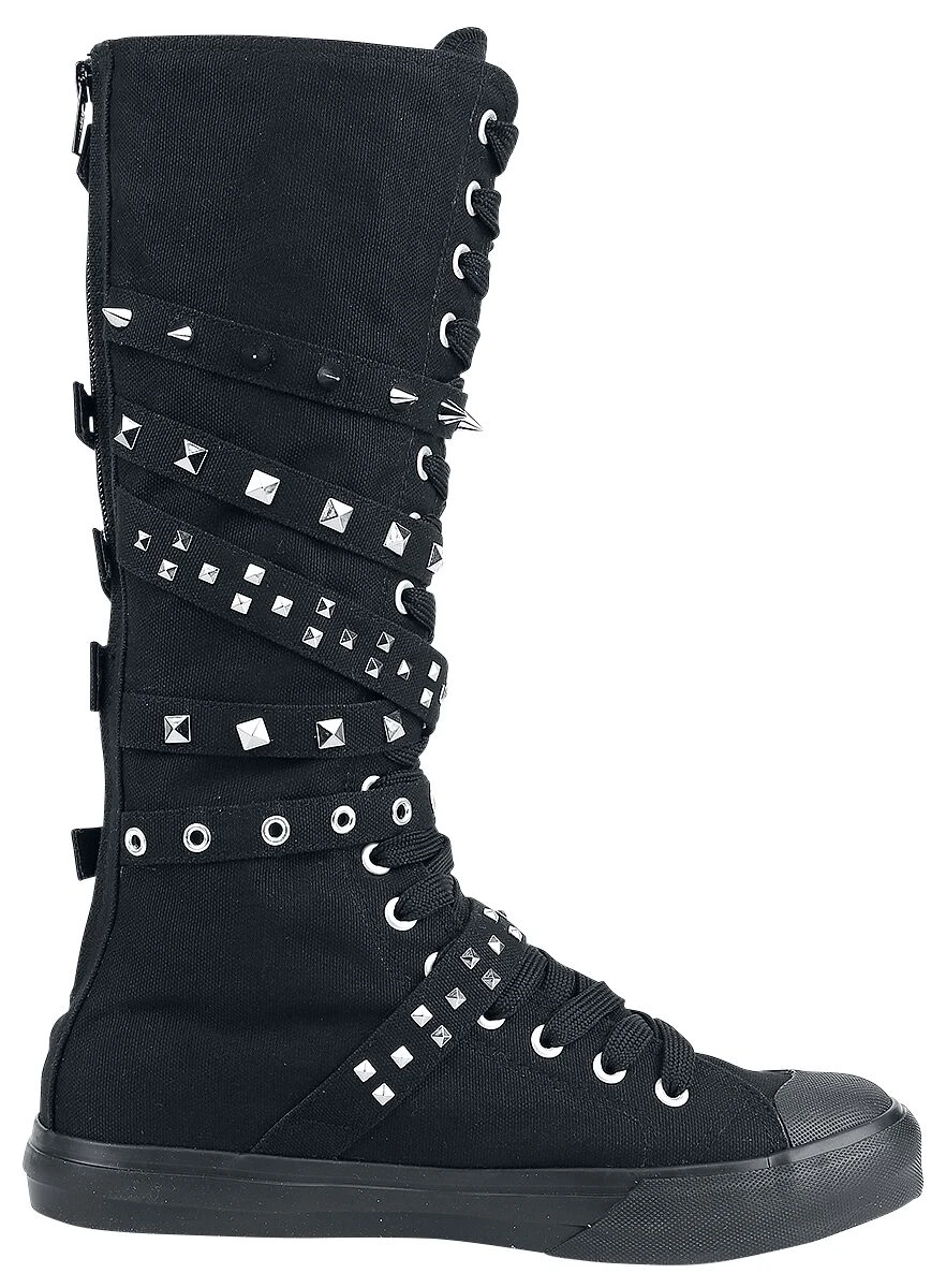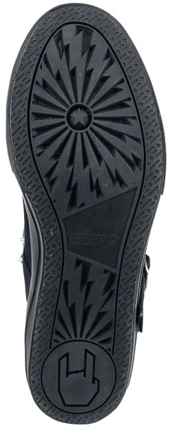A shoe with a fantastic reputation! The shoe from Black Premium by EMP is a high top trainer with a zip on the back. Silver studs in various sizes provide a chic contrast to the dominant black colour of this shoe. The shank, which is 29 cm high and 30 cm wide, has adjustable buckles and a logo print on the tongue. Cool!