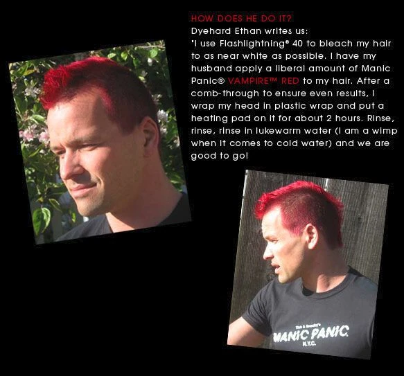 1. Hair Bleach (We recommend Manic Panic Hair Bleach (Art 256279). Follow the instructions on the packaging.) If you use another hair bleach, the after treatment/conditioner should NOT be used after the bleach!